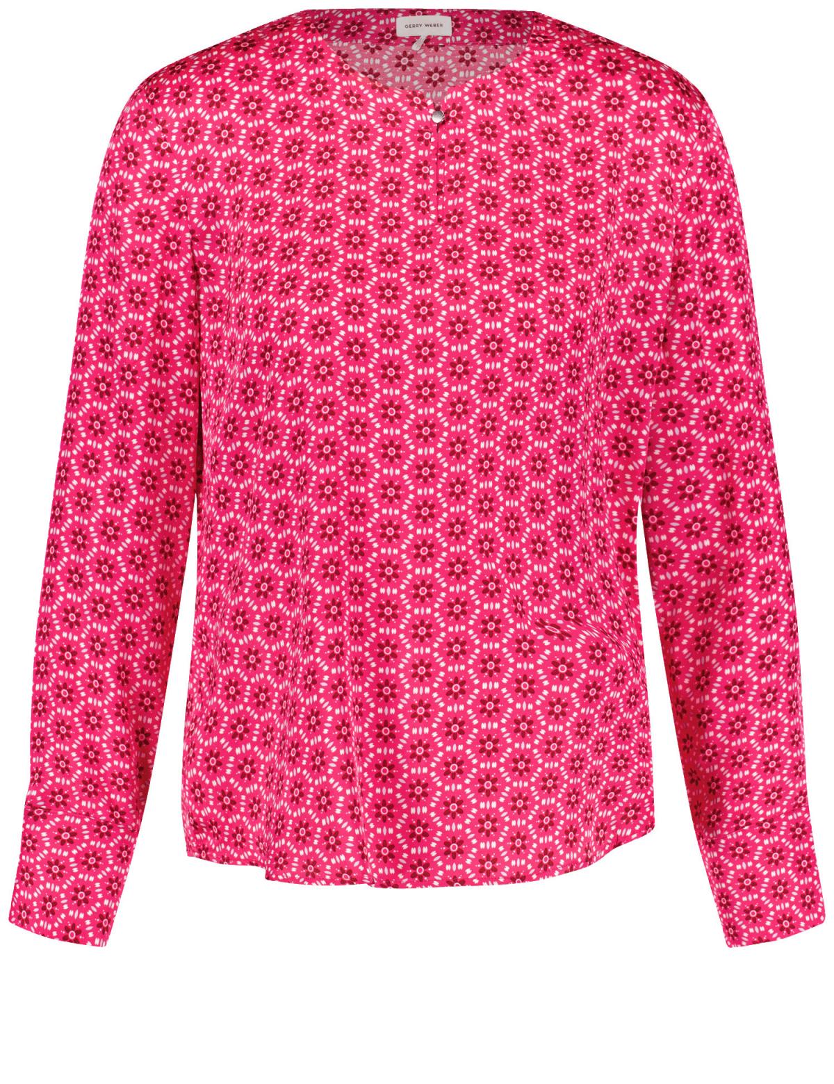 Mit dieser figurumspielender Langarmbluse vereinen Sie Mode und Nachhaltigkeit. Das detailverliebte Allover-Muster lockert jeden Look auf und wird zum richtigen Blickfang. Die fließende Viskosequalität ist nachhaltig hergestellt und hat positive Trageeigenschaften. Besondere Gestaltungsdetails, wie der abgerundete Saum und der Ausschnitt mit kleinem Schlitz und Knopfverschluss, runden den Gesamteindruck ab.