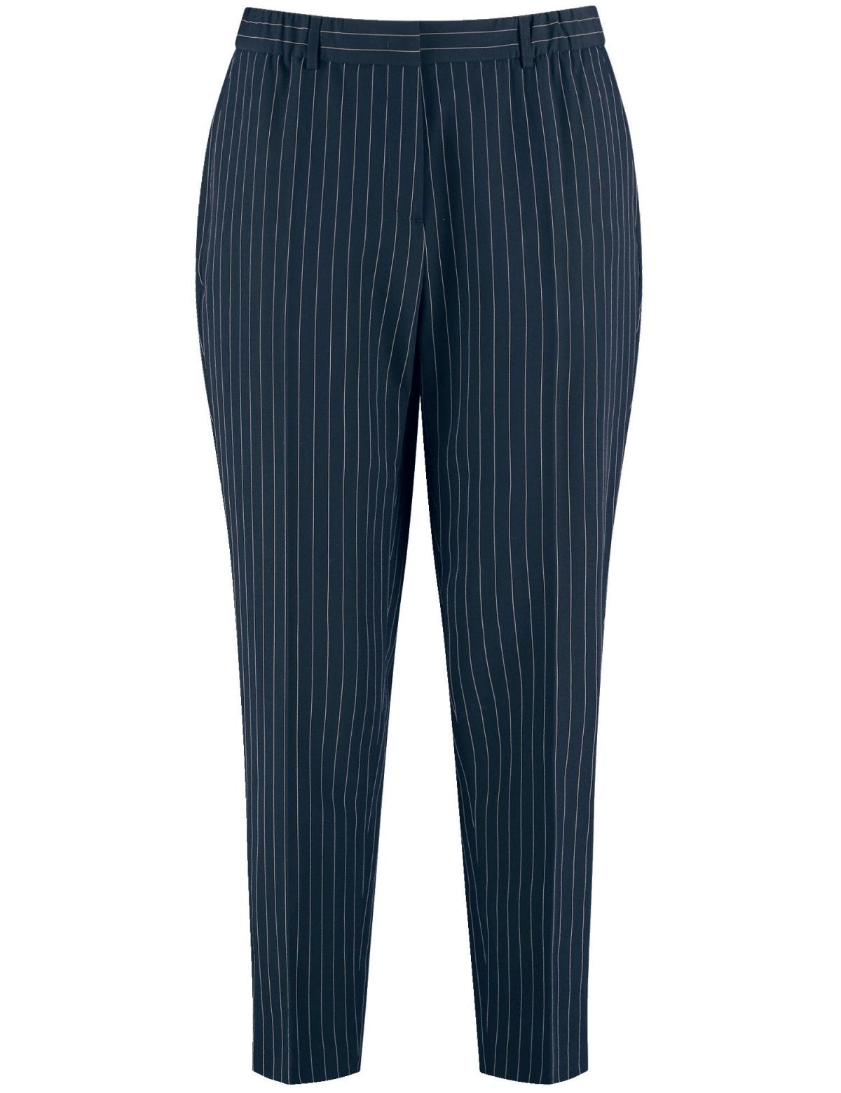 Perfektioniere deinen Style mit dieser eleganten 7/8 Hose! Die komfortabel geschnittene Passform mit Bügelfalten sorgt für einen klassischen Look, während die edle Qualität mit feinem Nadelstreifen ein luxuriöses Tragegefühl bietet. Dank ihrer knitterfreien Eigenschaften kannst du dich immer auf ein makelloses Erscheinungsbild verlassen. Trage sie mit dem passenden Blazer und einer Hemdbluse für einen stilvollen Anzug-Look oder style sie mit einem Kuschelpullover und Seakern.