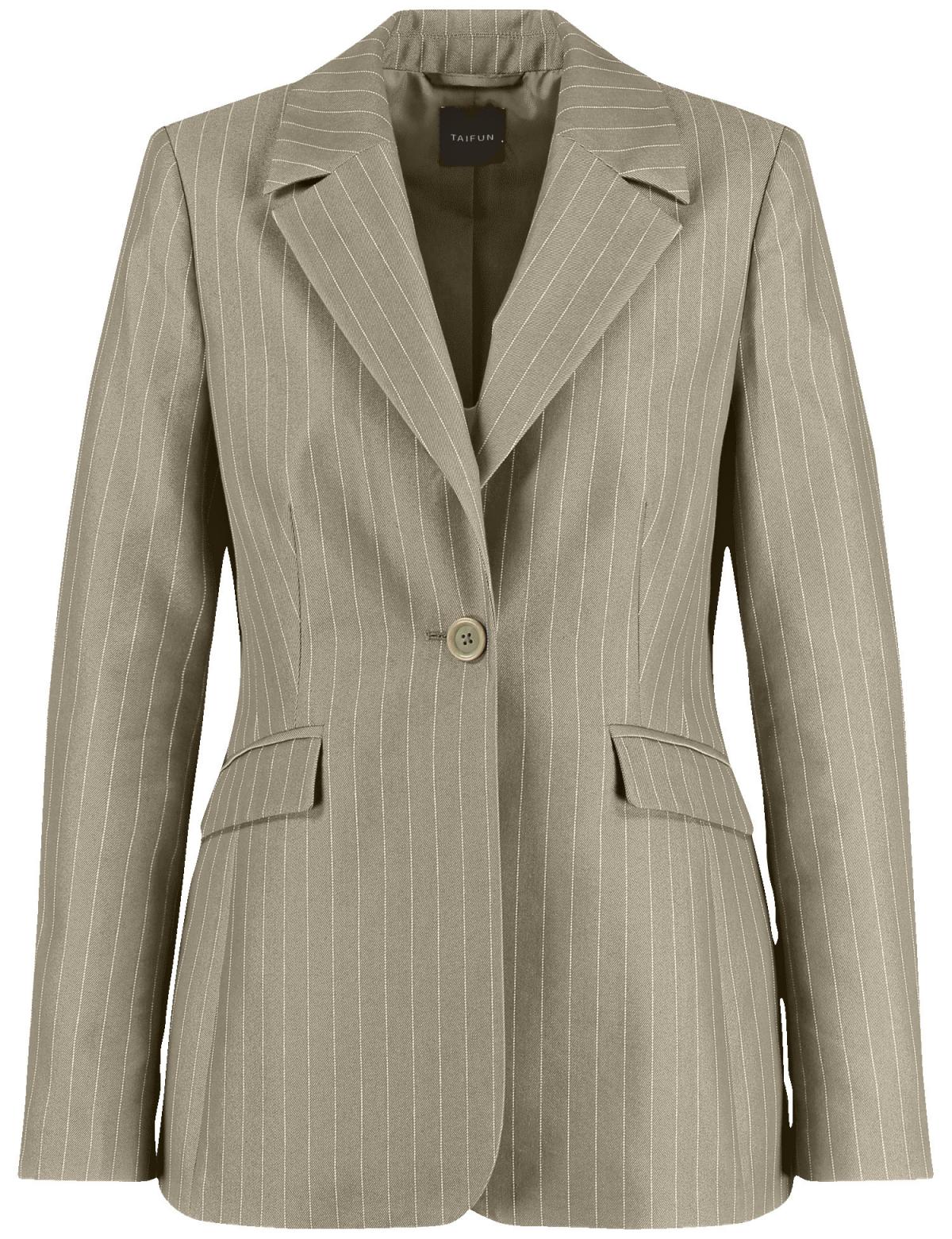 Dieser elegante Blazer in hochwertiger, fein schimmernder Qualität mit klassischen Nadelstreifen verleiht jedem Outfit einen Hauch von Luxus. Der taillierte Schnitt mit Revers und Pattentaschen schmeichelt der Figur und sorgt für einen stilvollen Auftritt. Kombiniere den Blazer mit der passenden Hose für einen atemberaubenden Anzug, der in jeder Situation überzeugt!