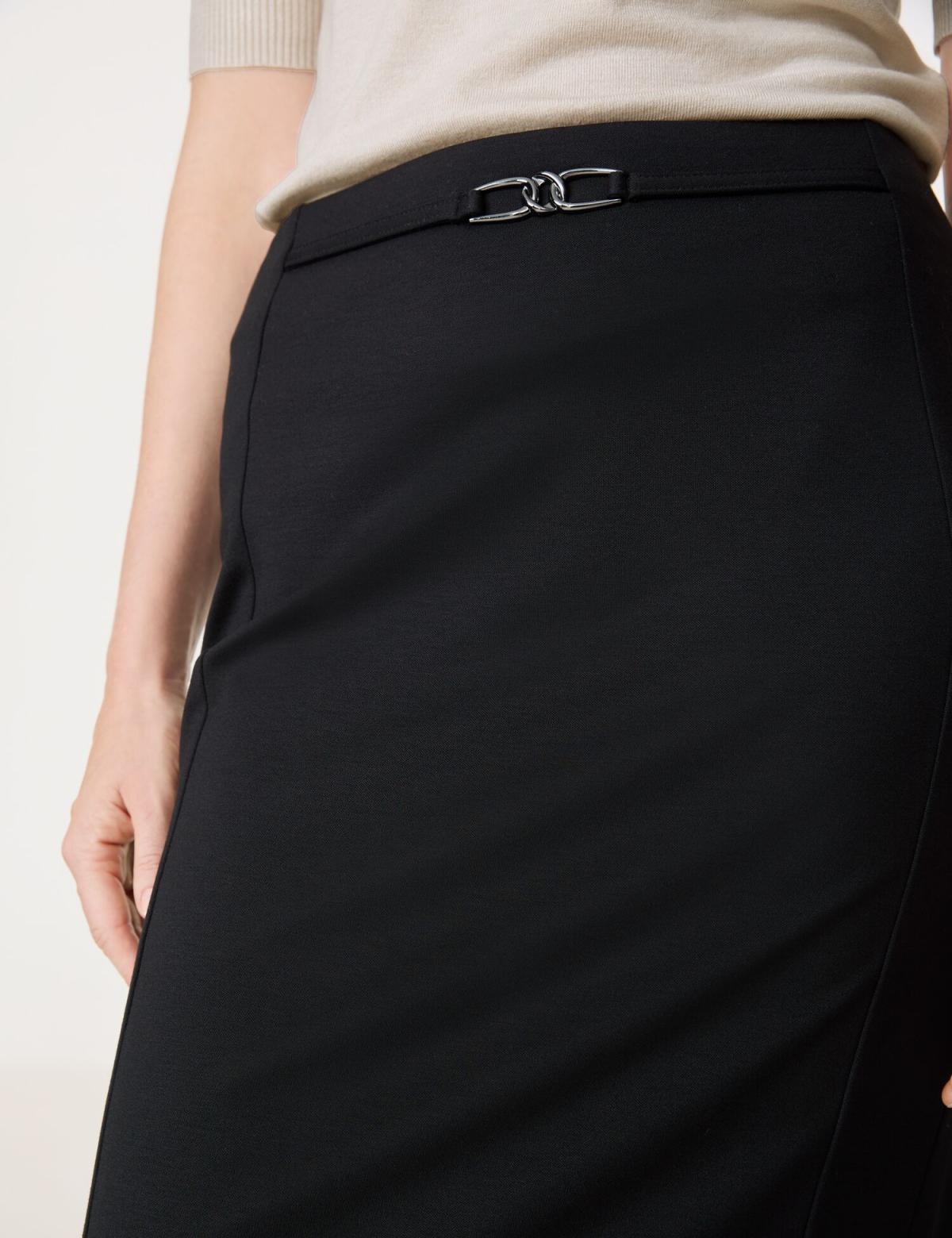 Mit diesem eleganten Bleistiftrock haben Sie ein zeitloses Must-have in Ihrer persönlichen Garderobe: Die feine Qualität mit Stretchkomfort trägt sich angenehm und zaubert Ihnen eine schöne Silhouette, ohne einzuengen. Formgebende Nähte und Abnäher unterstreichen den femininen Fit. Ein dekoratives Gürteldetail rundet den stilvollen Eindruck ab. Kombinieren Sie dazu auch den materialgleichen Blazer.