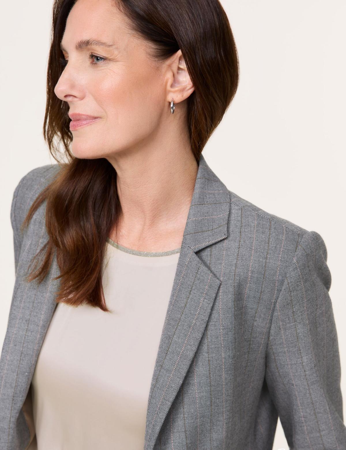 Setzen Sie auf zeitlose Eleganz mit unserem taillierten Blazer, der sowohl Stil als auch Komfort vereint! Dieser Blazer ist aus feiner Qualität gefertigt und bietet dank des Stretchkomforts eine optimale Passform, die sich perfekt an Ihre Körperkonturen anschmiegt, während der rückseitige Bewegungsschlitz zusätzliche Bewegungsfreiheit bietet. Passend dazu finden Sie in unserem Online-Shop auch die materialgleiche Hose.