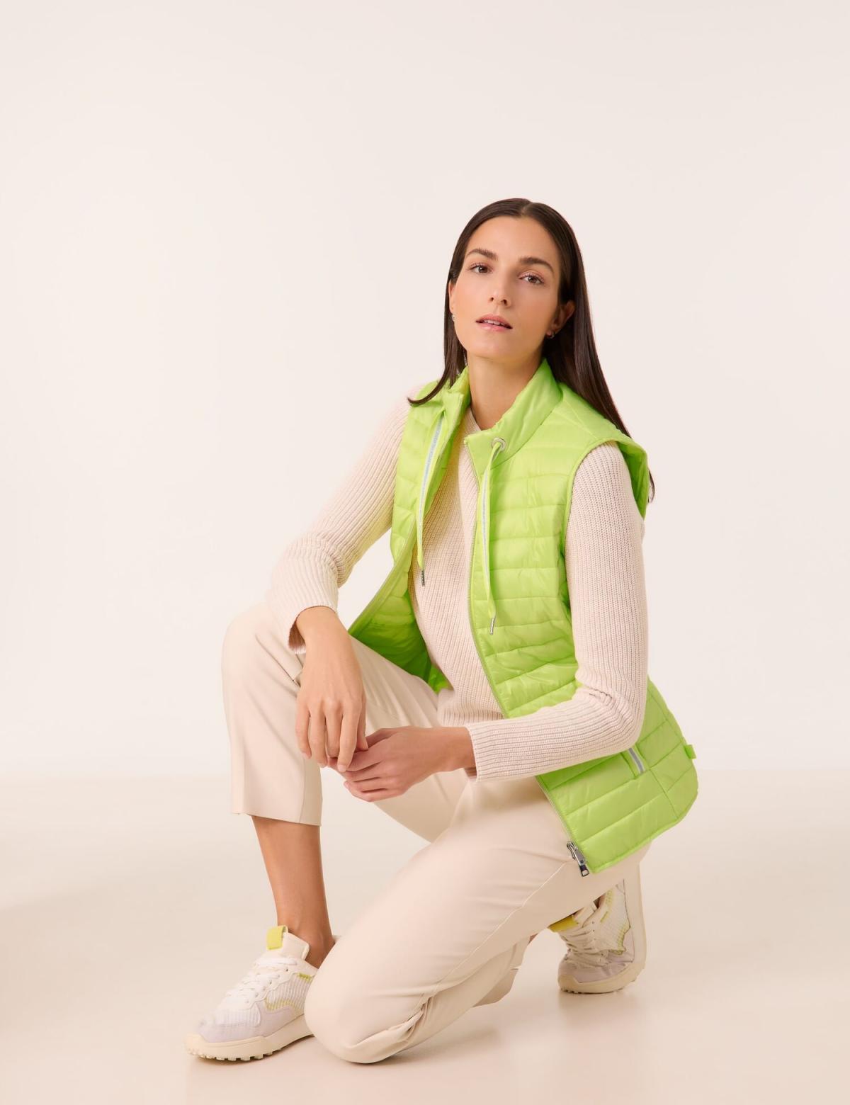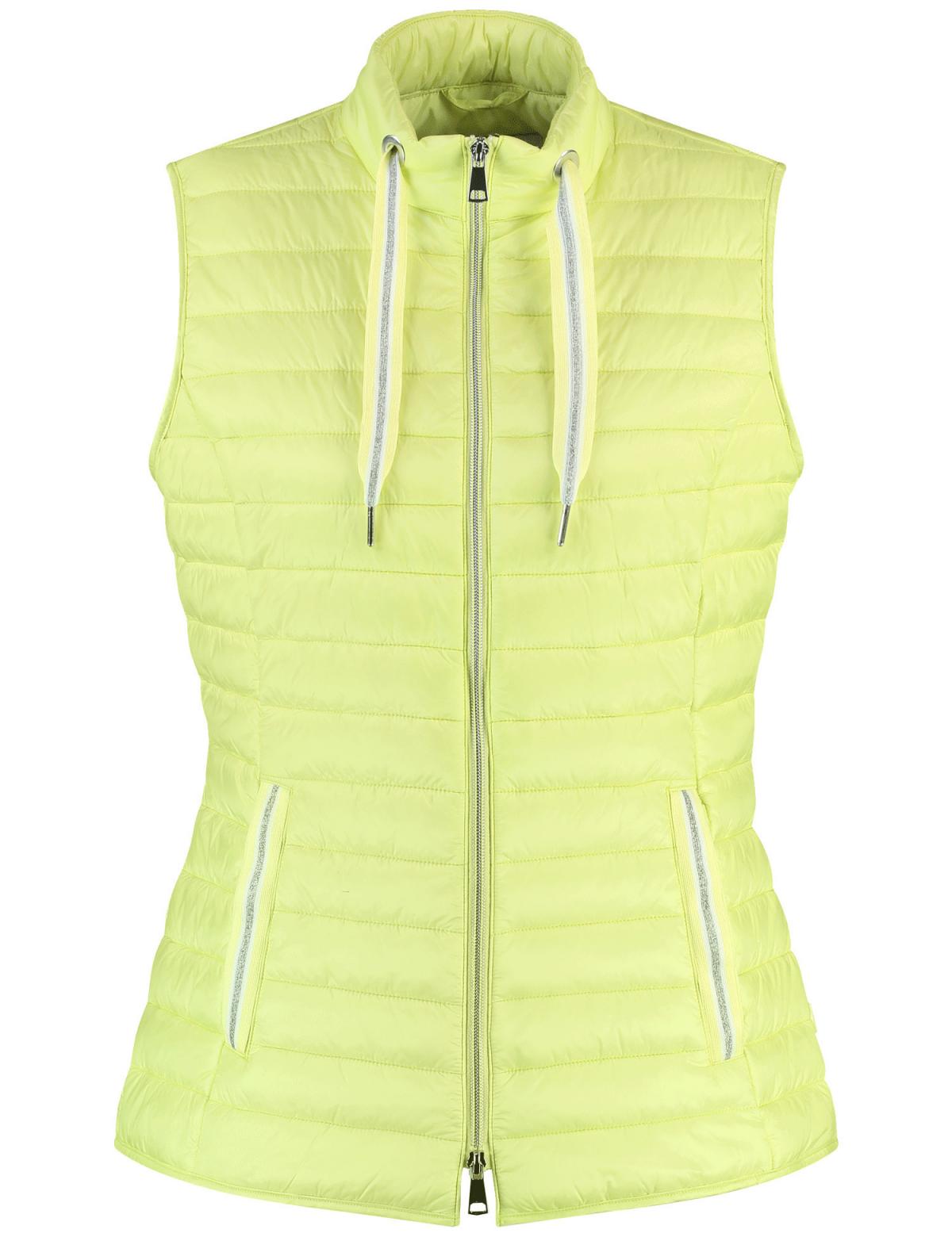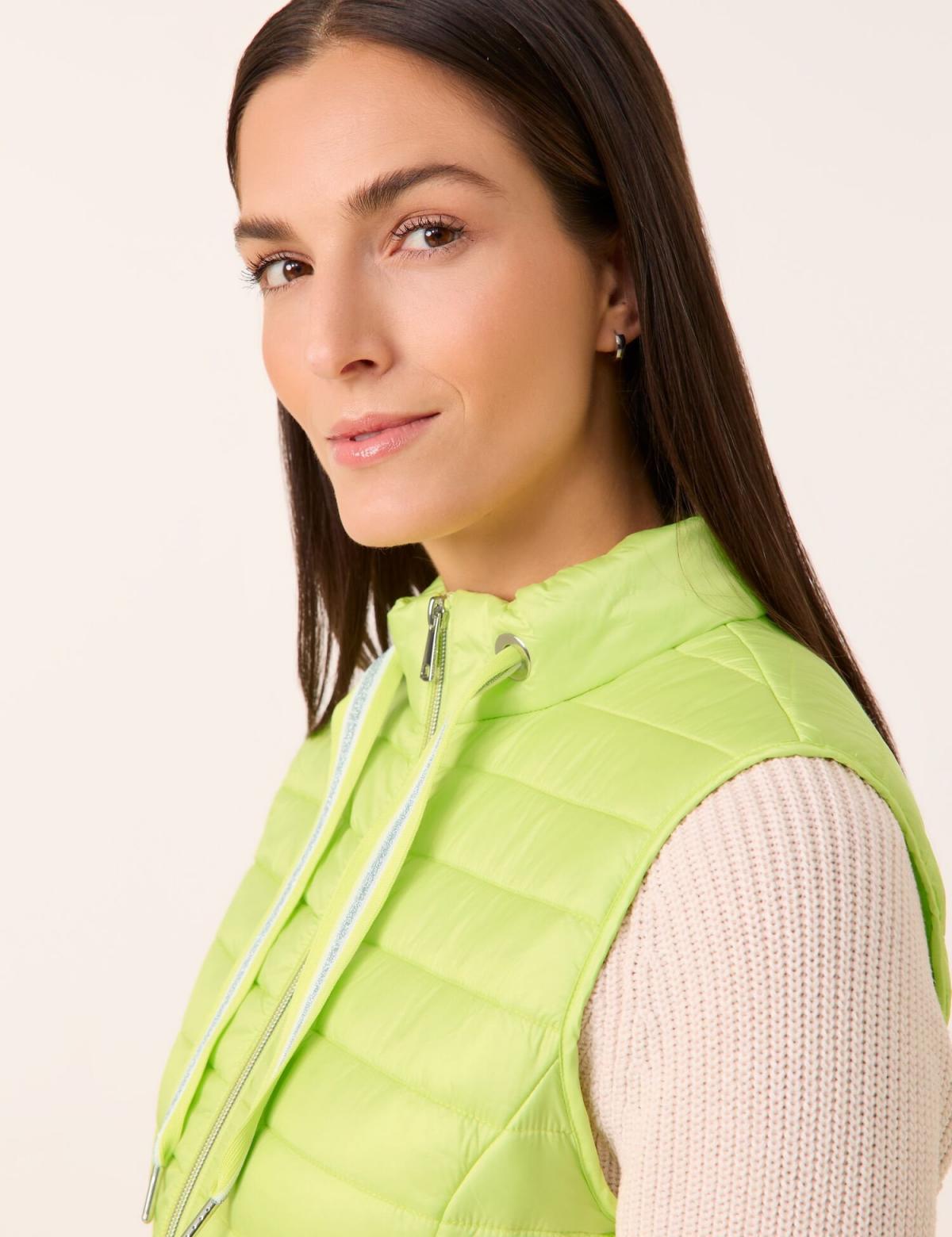 Diese modische Steppweste lässt sich vielseitig kombinieren und jahreszeitenübergreifend tragen. Die Absteppung und die farblich abgesetzten Ripsbänder mit Lurex sind modische Gestaltungsdetails, die Ihrem Outfit das gewisse Etwas verleihen. Tragen Sie die Weste solo über einen Pullover oder stylisch im Layering-Look, so gelingt mühelos ein Look, der sich auch der Wetterlage anpassen lässt.