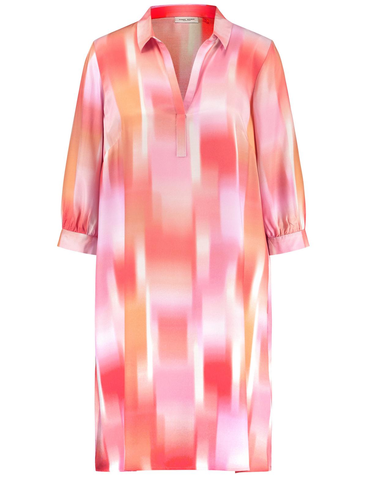 Mit diesem Modell vereinen Sie Nachhaltig und Mode: Das knieumspielende Blusenkleid ist aus nachhaltiger Viskosequalität und bietet somit hautfreundliche Trageeigenschaften. Der bequeme Schnitt fällt fließend und ist auch im Sommer eine komfortable Wahl. Kleine Falten am Ärmelsaum und die lange Ausschnittblende mit Kragen vervollständigen das Gesamtbild. Damit sind Sie bei jedem Sommerevent ein eleganter Hingucker!