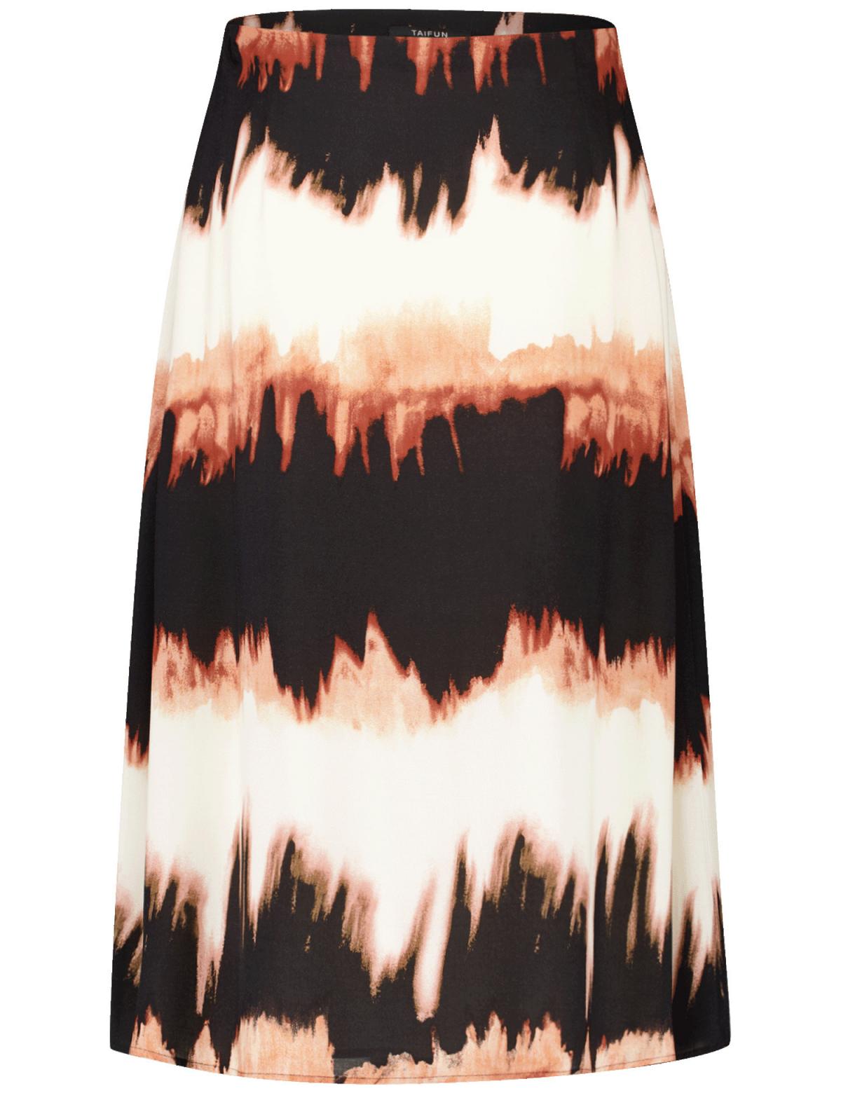 Erwecke deine Garderobe zum Leben mit diesem bezaubernden Rock! Der ausgefallene Print in warmen Erdtönen zieht alle Blicke auf sich und verleiht deinem Outfit eine einzigartige Note. Seine ausgestellte Form und die Midilänge sorgen für eine feminine Silhouette, während sich die fließende, nachhaltige Qualität angenehm auf der Haut trägt. Wie würdest du diesen Rock stylen, um deinen persönlichen Stil zum Ausdruck zu bringen