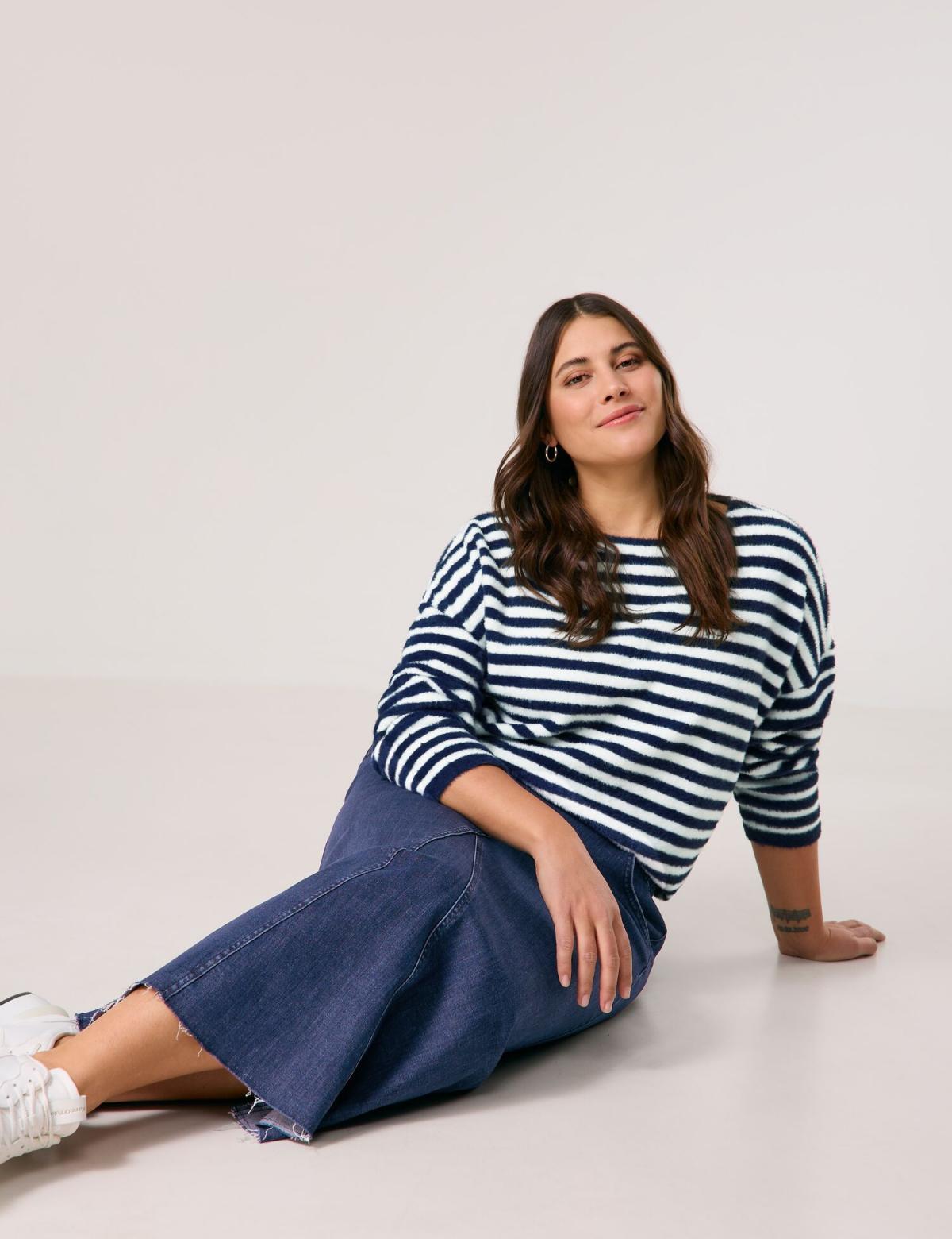 Ein Denim-Klassiker neu interpretiert! Unser Jeansrock in Midilänge setzt auf coole Details: Die stiltypischen Steppnähte und die ausgefranste Saumkante verleihen ihm einen lässigen Look, während die Rückseite mit nur einer Gesäßtasche den minimalischten Trend unterstreicht. Ein vielseitiger Begleiter, der zu Sneakern genauso gut passt wie zu eleganten Boots!