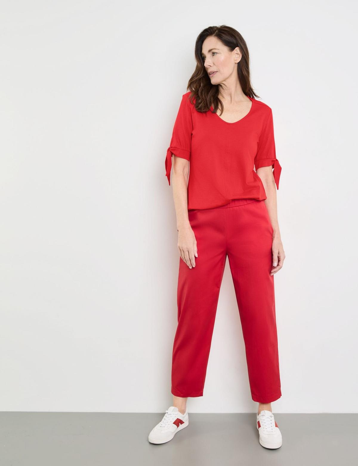 Dieses trendige Shirt ist bequem und vielseitig kombinierbar und verleiht Ihrem Outfit das gewisse Etwas. Das Bindedetail am Ärmel setzt einen modischen Akzent und macht das Halbarmshirt zu einem echten Blickfang. Egal ob im Büro, beim Shopping oder für einen entspannten Tag zu Hause – mit diesem Halbarmshirt sind Sie immer perfekt gekleidet. Verlieben Sie sich in diesen Alllrounder und bringen Sie frischen Wind in Ihre Garderobe!