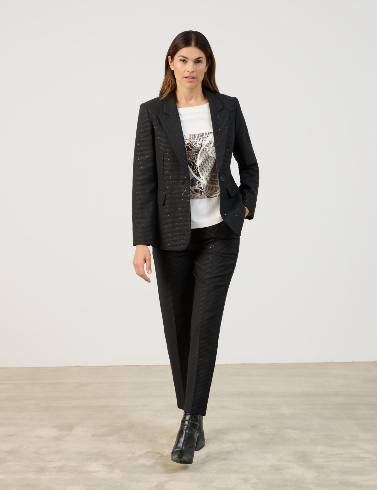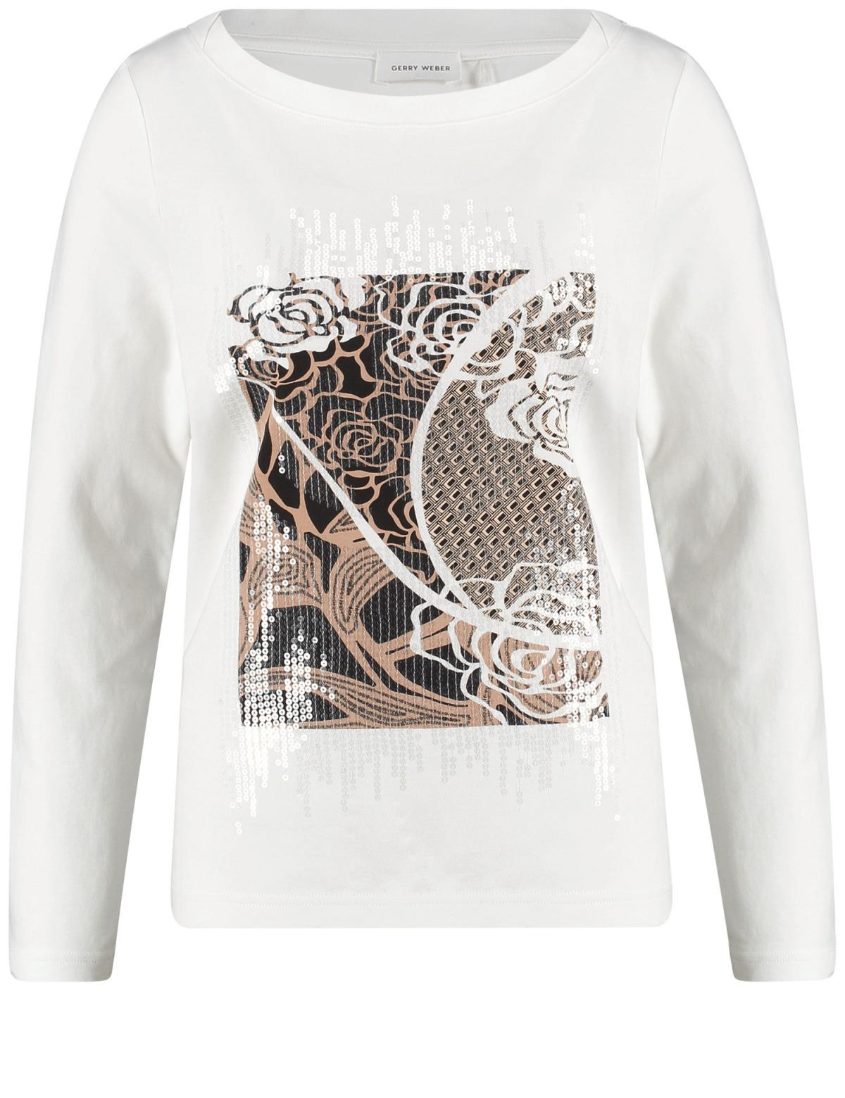 Bringen Sie frischen Wind in Ihre Garderobe mit unserem körpernahen Langarmshirt. Der auffällige Frontprint und die funkelnde Paillettenzier setzen modische Akzente, während die breite Ausschnittblende aus Rippstrick für einen lässigen Touch sorgt. Dieses Shirt ist perfekt für den Alltag oder besondere Anlässe und lässt sich mühelos mit Jeans oder Röcken kombinieren. Ein vielseitiges Teil, das in keinem Kleiderschrank fehlen sollte!
