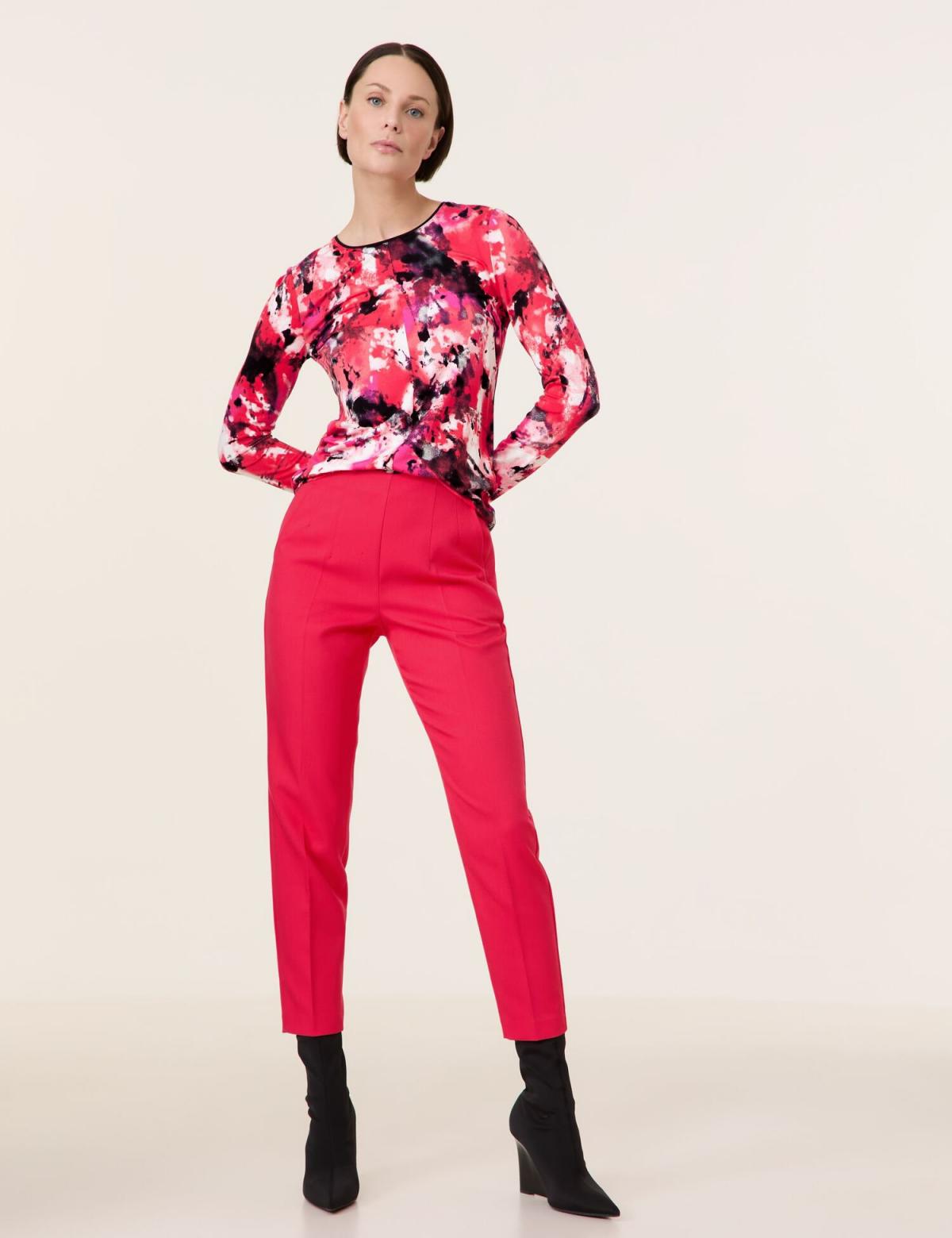 Dieses Longsleeve zieht garantiert alle Blicke auf sich! Mit seinem abstrakten Allover-Print setzt es ein klares modisches Statement. Der figurbetonte Schnitt unterstreicht deine Silhouette, während der nachhaltige, softe Jersey für Komfort sorgt. Perfekt für alle, die gerne auffallen und ihren Look mit einzigartigen Details abrunden.