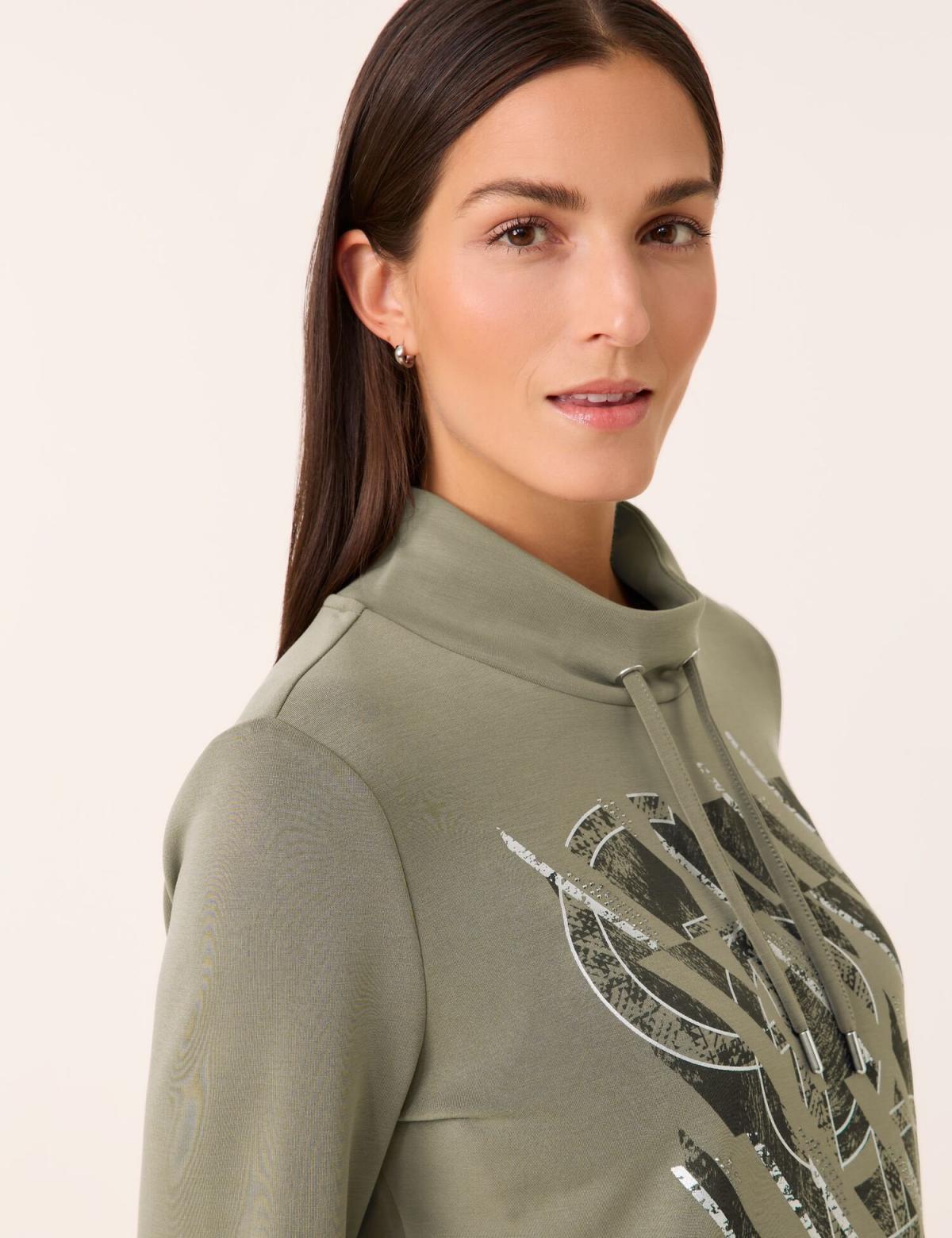 Lässig und stilvoll: Dieses Langarmshirt aus weichem Sandy Washed Sweat kombiniert maximalen Tragekomfort mit trendigem Design. Der markante Frontprint mit Wording verleiht einen modernen Look, während der Stehkragen mit Tunnelband individuell anpassbar ist. Kombinieren Sie unsere materialgleiche Hose – Ideal für entspannte Freizeit-Outfits mit einer Extraportion Style!