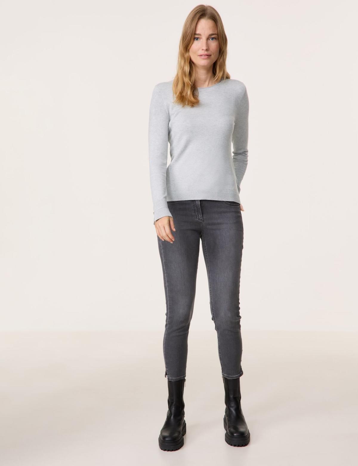Basics lieben wir! Dieser softe Pullover aus Feinstrick wird Ihre Nummer 1, wenn Sie unkomplizierte und doch stilvolle Looks mögen. Aufgelockert wird der schlichte Rundhalspullover durch Rippstrickdetails und einem dekorativen Knopfdetail am Ärmel. Zur Jeans, Stoffhose oder auch zu einem Rock, dieser Pullover wird Sie lange begleiten!