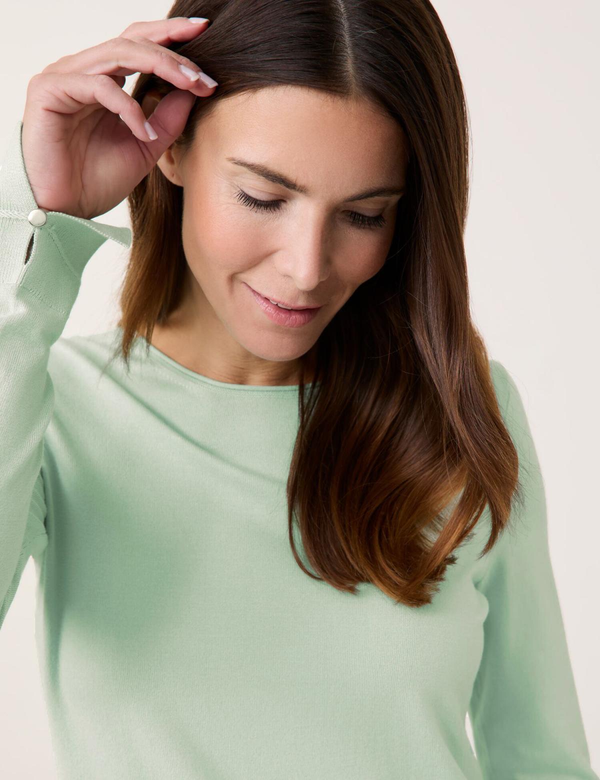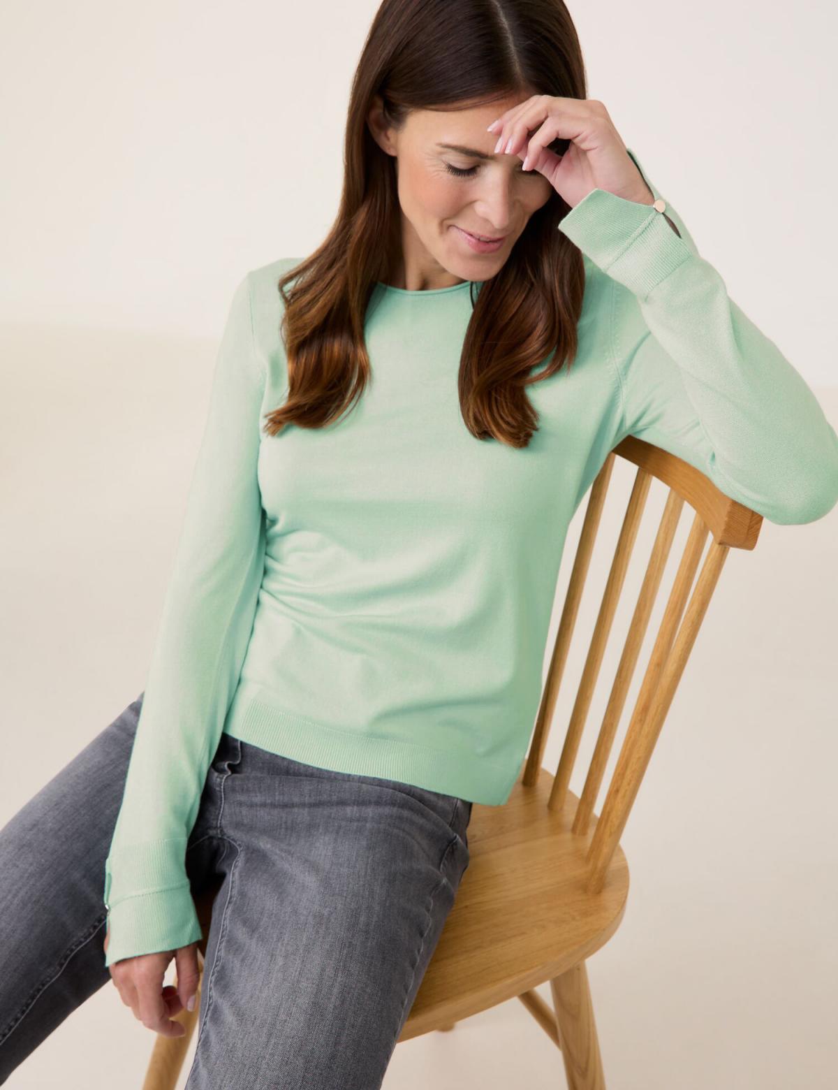 Basics lieben wir! Dieser softe Pullover aus Feinstrick wird Ihre Nummer 1, wenn Sie unkomplizierte und doch stilvolle Looks mögen. Aufgelockert wird der schlichte Rundhalspullover durch Rippstrickdetails und einem dekorativen Knopfdetail am Ärmel. Zur Jeans, Stoffhose oder auch zu einem Rock, dieser Pullover wird Sie lange begleiten!