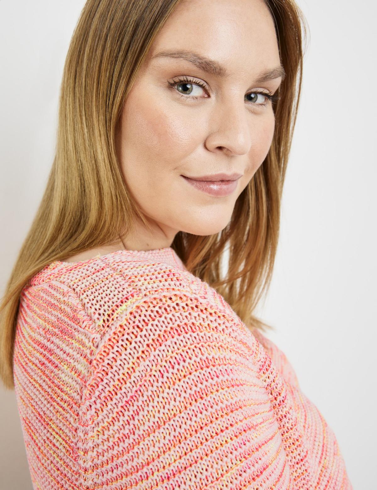 Unser Pullover aus effektvollem Multicolour Garn ist der ultimative Stimmungsaufheller. Die herrlichen Farbnuancen verschmelzen harmonisch und geben deinem Outfit eine spielerische Leichtigkeit. Lass den Pullover das Highlight deines Looks werden!